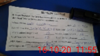 | Monitoring Date: 16-10-2020 | Start Time: 16-10-2020 11:43 AM | End Time: 16-10-2020 11:55 AM | Name of MEA: MA**** ULHA**** KH**** | |