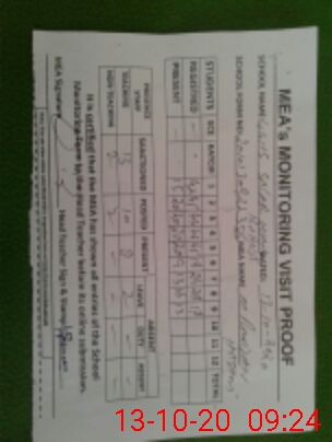 | Attendance Register | Head Teacher | MEA with School | Visit Proof |