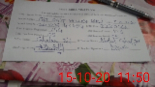| Monitoring Date: 15-10-2020 | Start Time: 15-10-2020 11:13 AM | End Time: 15-10-2020 11:51 AM | Name of MEA: Gh**** Al**** | |