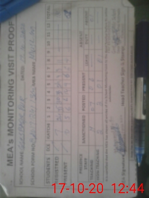 | Attendance Register | Head Teacher | MEA with School | Visit Proof |