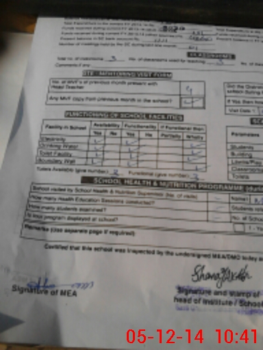 | Attendance Register | Head Teacher | MEA with School | Visit Proof |