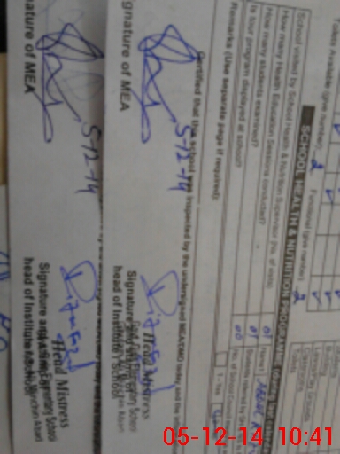 | School Visited by School Health & Nutrition Supervisor (No. of Visits) | 1 | Name1: | ABDUL RAZIQ | Name2: | |