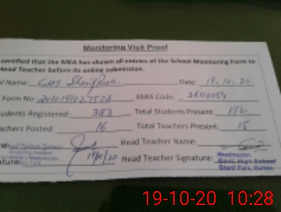 | Attendance Register | Head Teacher | MEA with School | Visit Proof |