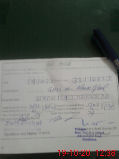 | Certified that this School was Inspected by the Undersigned MEA/DMO Today and the Information Stated Above is as Per Record. | |||||