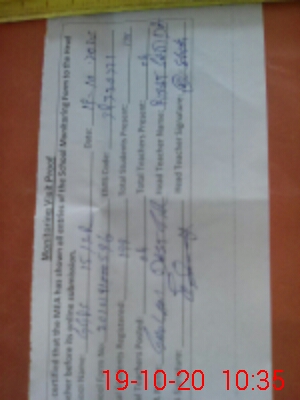 | Certified that this School was Inspected by the Undersigned MEA/DMO Today and the Information Stated Above is as Per Record. | |||||