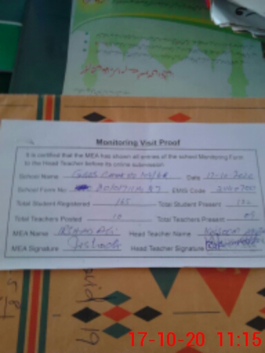 | Attendance Register | Head Teacher | MEA with School | Visit Proof |