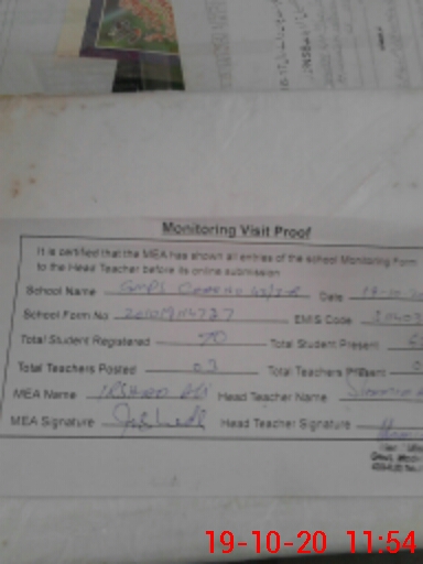 | Attendance Register | Head Teacher | MEA with School | Visit Proof |