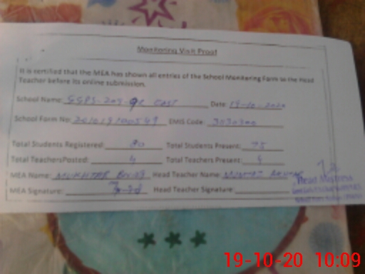 | Attendance Register | Head Teacher | MEA with School | Visit Proof |