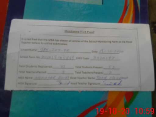 | Attendance Register | Head Teacher | MEA with School | Visit Proof |