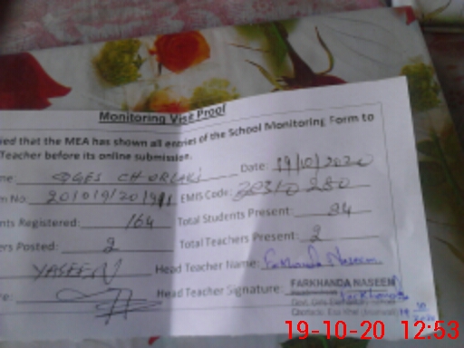| EMIS Code: 38310280 | Name of School: GGES CHORLAKI BANGI KHEL | |||