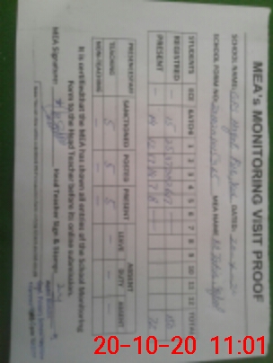 | Attendance Register | Head Teacher | MEA with School | Visit Proof |