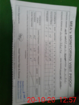 | Attendance Register | Head Teacher | MEA with School | Visit Proof |