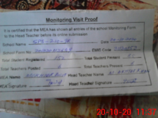 | Attendance Register | Head Teacher | MEA with School | Visit Proof |