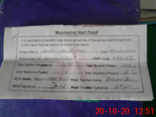 | Attendance Register | Head Teacher | MEA with School | Visit Proof |