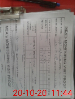 | Monitoring Date: 20-10-2020 | Start Time: 20-10-2020 11:14 AM | End Time: 20-10-2020 11:48 AM | Name of MEA: M.Is**** (S**** 03**** | |