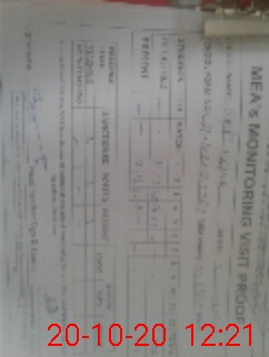 | Monitoring Date: 20-10-2020 | Start Time: 20-10-2020 11:50 AM | End Time: 20-10-2020 12:25 PM | Name of MEA: M.Is**** (S**** 03**** | |