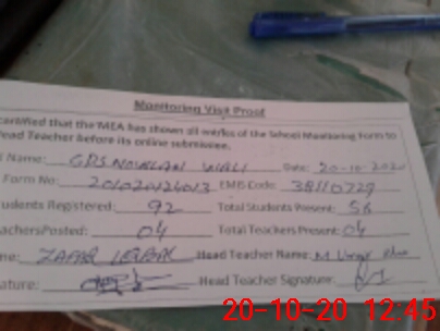 | EMIS Code: 38110729 | Name of School: GPS NOWLAN WALI | |||
