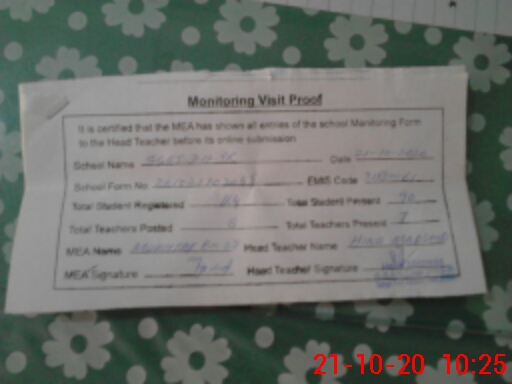 | Attendance Register | Head Teacher | MEA with School | Visit Proof |