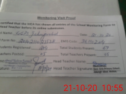 | Attendance Register | Head Teacher | MEA with School | Visit Proof |