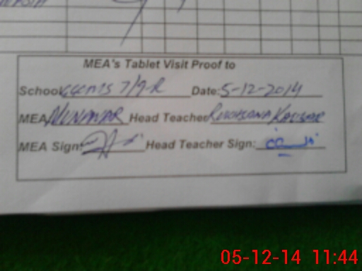 | Attendance Register | Head Teacher | MEA with School | Visit Proof |
