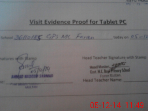 | EMIS Code: 36110185 | Name of School: GPS MC FARAAN NEAR KHONI BURJ MULTAN | |||