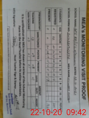 | Attendance Register | Head Teacher | MEA with School | Visit Proof |