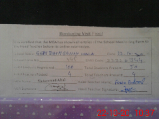 | EMIS Code: 32320344 | Name of School: GGPS DHENGANAY WALA | |||