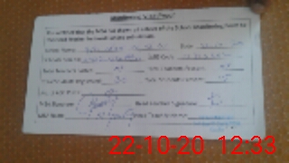 | Monitoring Date: 22-10-2020 | Start Time: 22-10-2020 12:23 PM | End Time: 22-10-2020 12:35 PM | Name of MEA: Mu**** Yo**** | |