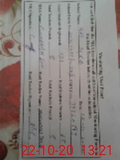 | School Visited by School Health & Nutrition Supervisor (No. of Visits) | Name1: | Nil | Name2: | ||