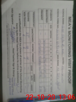 | Monitoring Date: 22-10-2020 | Start Time: 22-10-2020 12:19 PM | End Time: 22-10-2020 01:09 PM | Name of MEA: M.Ta**** Iq**** (S**** | |