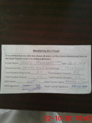 | Certified that this School was Inspected by the Undersigned MEA/DMO Today and the Information Stated Above is as Per Record. | |||||
