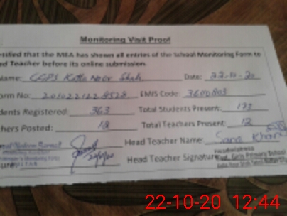 | EMIS Code: 36110803 | Name of School: GGPS KOTLA NOOR SHAH MUZAFARABAD | |||