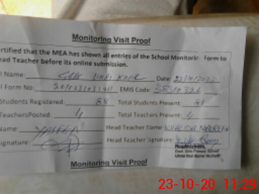 | Attendance Register | Head Teacher | MEA with School | Visit Proof |