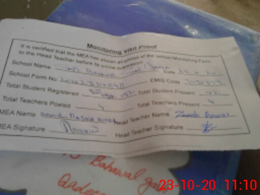 | Attendance Register | Head Teacher | MEA with School | Visit Proof |