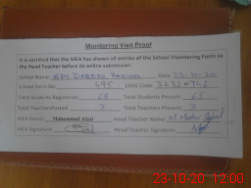 | EMIS Code: 32320746 | Name of School: GPS DARBAR HABEBIA | |||