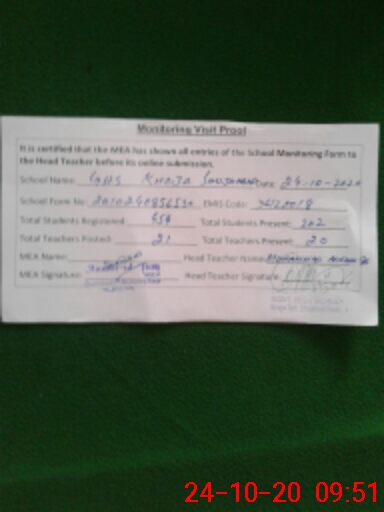 | EMIS Code: 36120018 | Name of School: GHS KHOJA P.O. KHOJA TEH. SHUJABAD DISTRICT MULTAN | |||