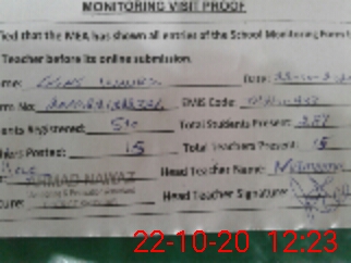 | Certified that this School was Inspected by the Undersigned MEA/DMO Today and the Information Stated Above is as Per Record. | |||||