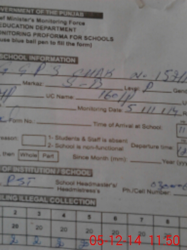 | Name: Sa**** Am**** Designation: (School Headmaster's/Headmistress's) PST/PTC/JV Phone/Cell Number: 03**** |