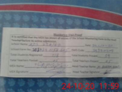 | Attendance Register | Head Teacher | MEA with School | Visit Proof |