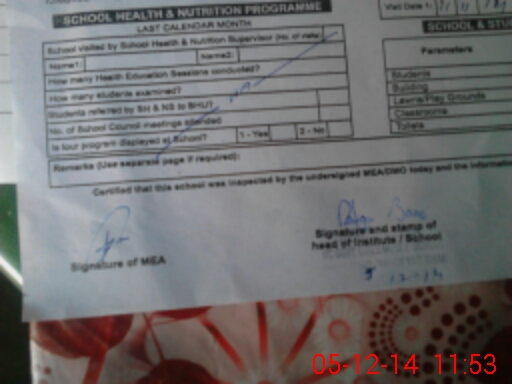 | Certified that this School was Inspected by the Undersigned MEA/DMO Today and the Information Stated Above is as Per Record. | |||||