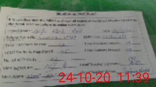 | Monitoring Date: 24-10-2020 | Start Time: 24-10-2020 11:26 AM | End Time: 24-10-2020 11:57 AM | Name of MEA: No**** Ha**** | |