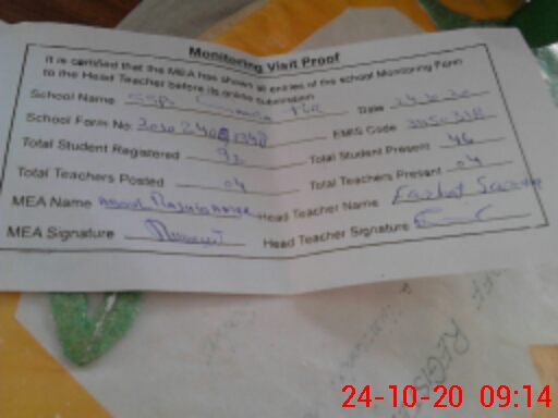 | Certified that this School was Inspected by the Undersigned MEA/DMO Today and the Information Stated Above is as Per Record. | |||||