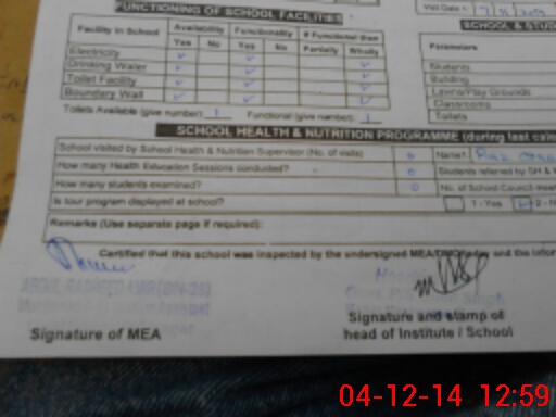 | Certified that this School was Inspected by the Undersigned MEA/DMO Today and the Information Stated Above is as Per Record. | |||||