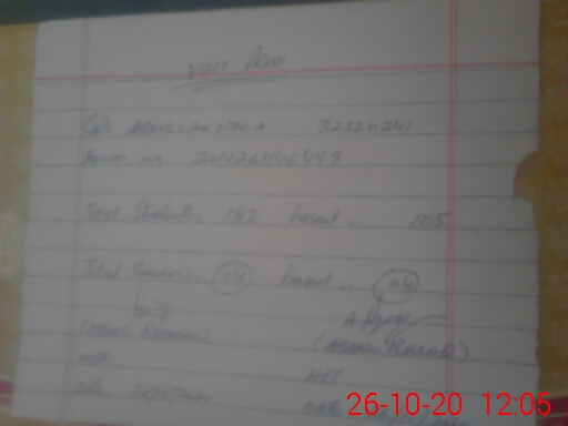 | Monitoring Date: 26-10-2020 | Start Time: 26-10-2020 11:46 AM | End Time: 26-10-2020 12:34 PM | Name of MEA: Ab**** Re**** | |