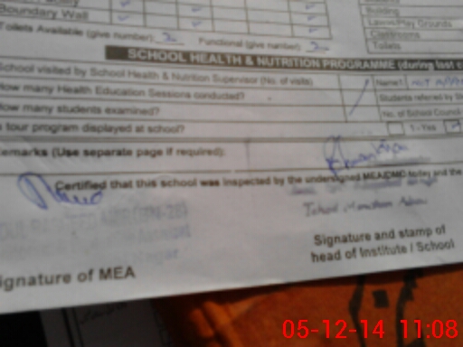 | Certified that this School was Inspected by the Undersigned MEA/DMO Today and the Information Stated Above is as Per Record. | |||||