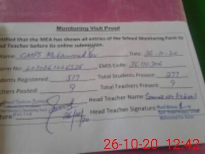 | EMIS Code: 36110306 | Name of School: GMPS MUHAMMAD PUR GHOTA MULTAN | |||
