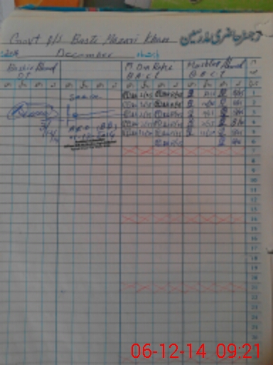 | CNIC | Full Name | Designation | R/C | Absence During Last Calender Month |