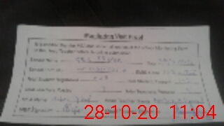 | Monitoring Date: 28-10-2020 | Start Time: 28-10-2020 10:21 AM | End Time: 28-10-2020 11:05 AM | Name of MEA: Za**** Iq**** BN**** | |