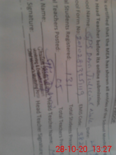 | Name: Mu**** Ja**** Designation: (School Headmaster's/Headmistress's) PST Phone/Cell Number: 03**** |