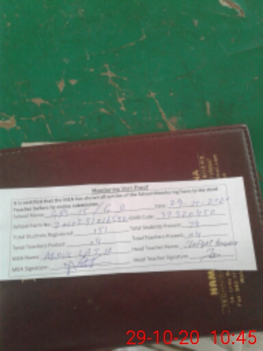 | Certified that this School was Inspected by the Undersigned MEA/DMO Today and the Information Stated Above is as Per Record. | |||||